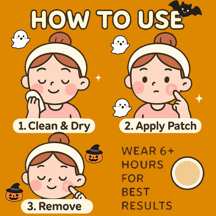 تتميز هذه الرقع بتصميمات الأشباح واليقطين، مما يضيف لمسة هالوين ممتعة إلى روتين علاج حب الشباب الخاص بك.