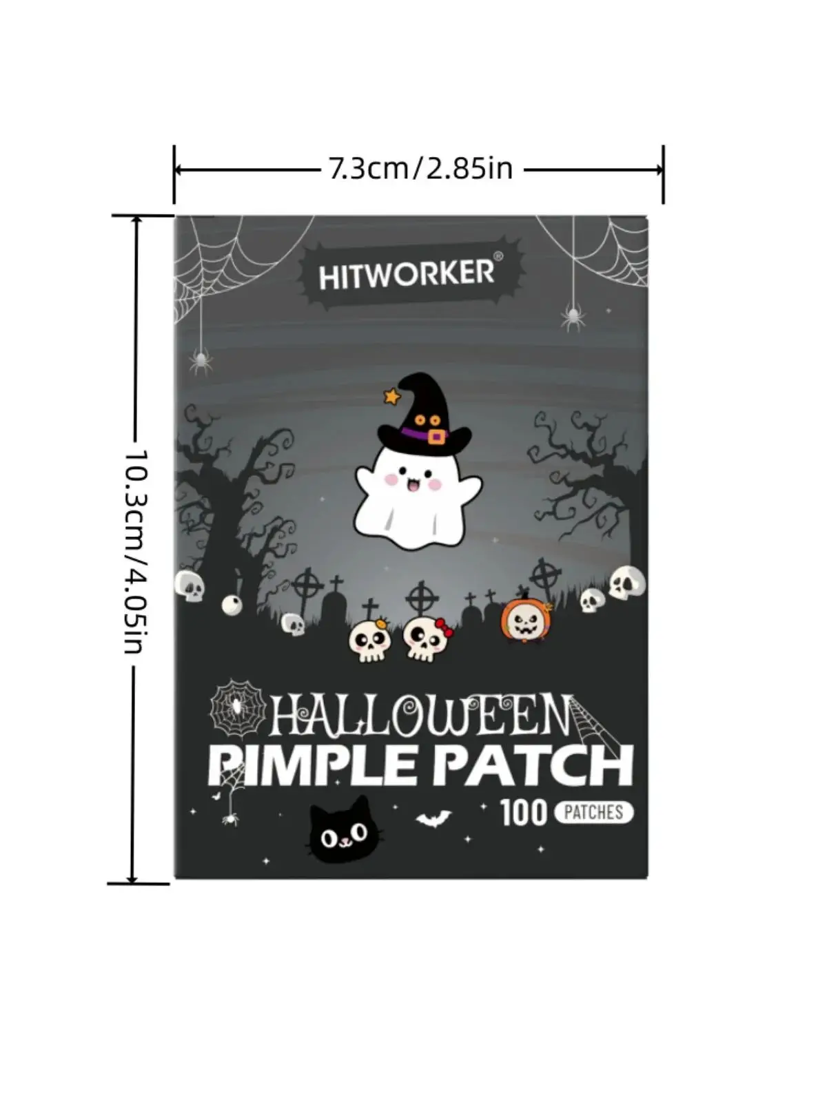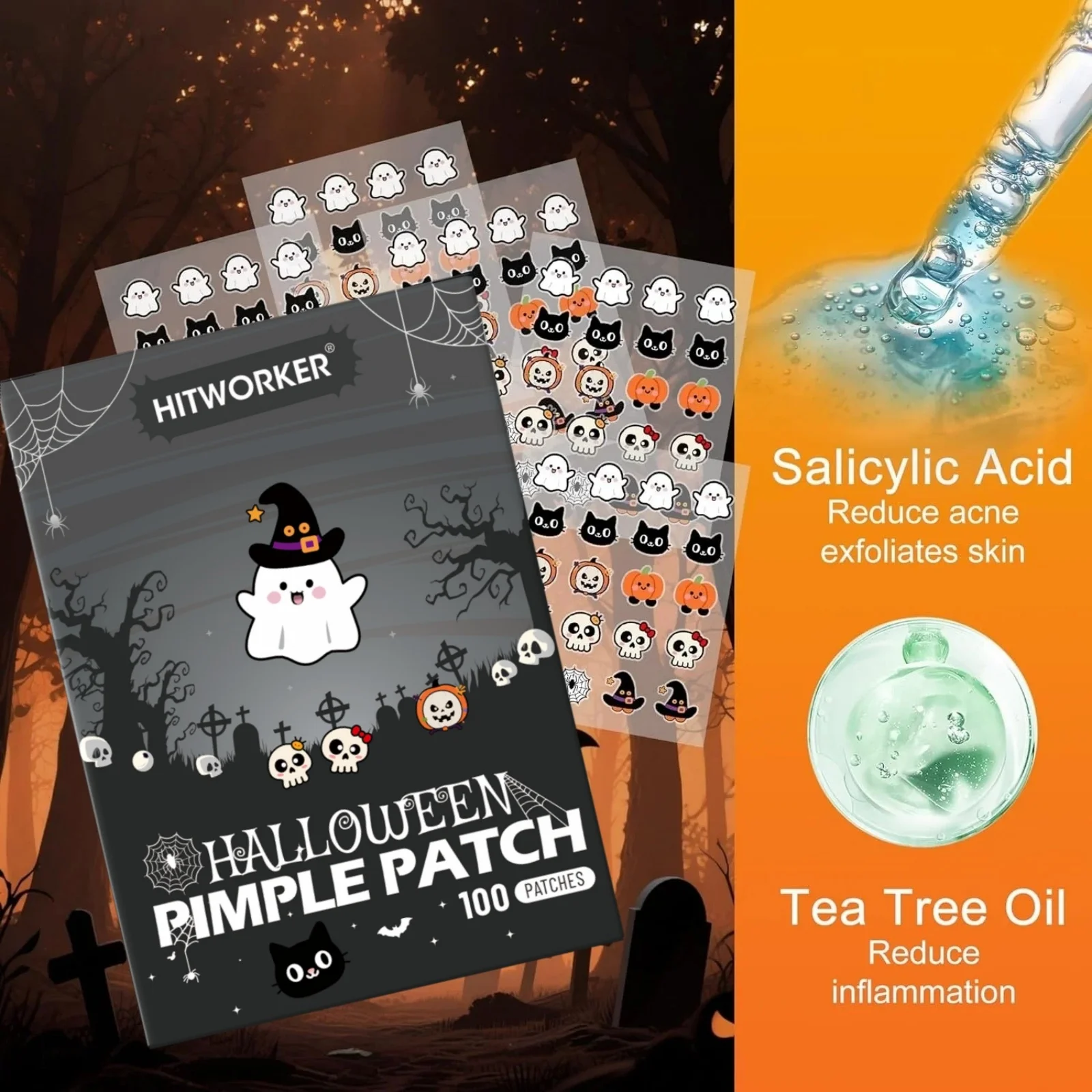 100pcs HITWORKER Halloween Hydrocolloid Acne Patches – Pumpkin & Bat Shapes, Alcohol & Fragrance-Free, For All Light Beige Skin,
