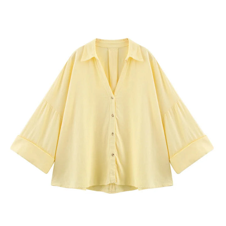 2025 Spring/Summer Trendy Women's Blouses - Long Sleeve V-neck Solid Color Shirts Fashionable Office Wear