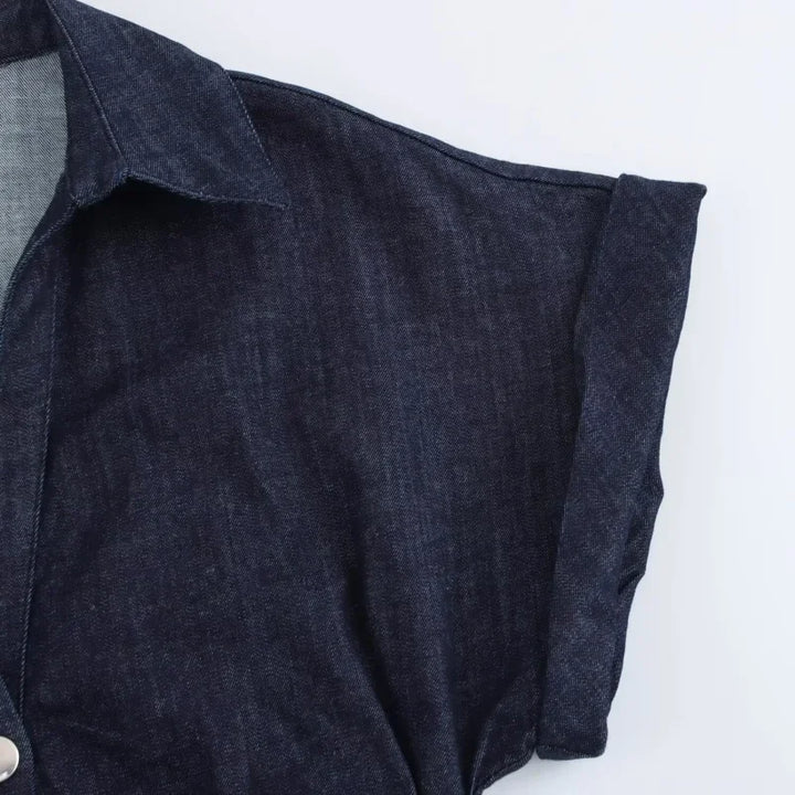 Spring New 1975 series denim MIDI dress with lapel side zipper fashion wrinkle waist slim elegant dress