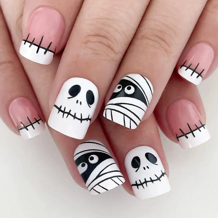 24pcs Wearable Nails Patch Pumpkin Spider Ghost Halloween Style Artificial False Nail Art Manicure Removable Girl Halloween Gift