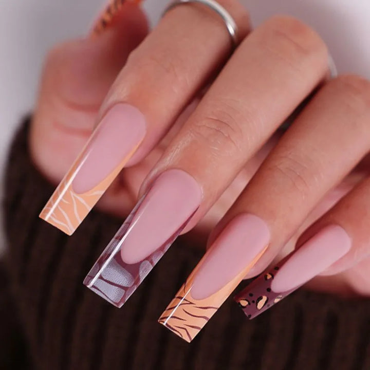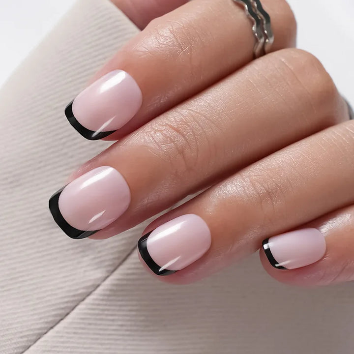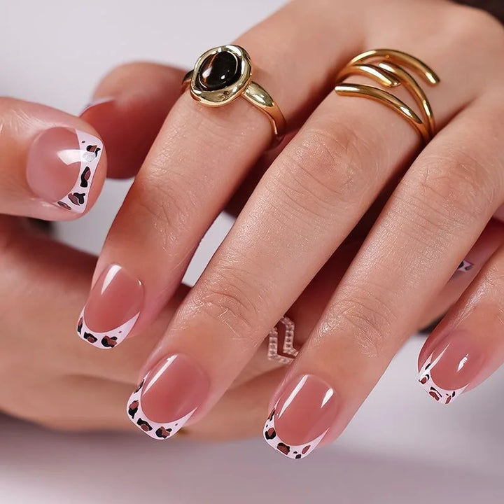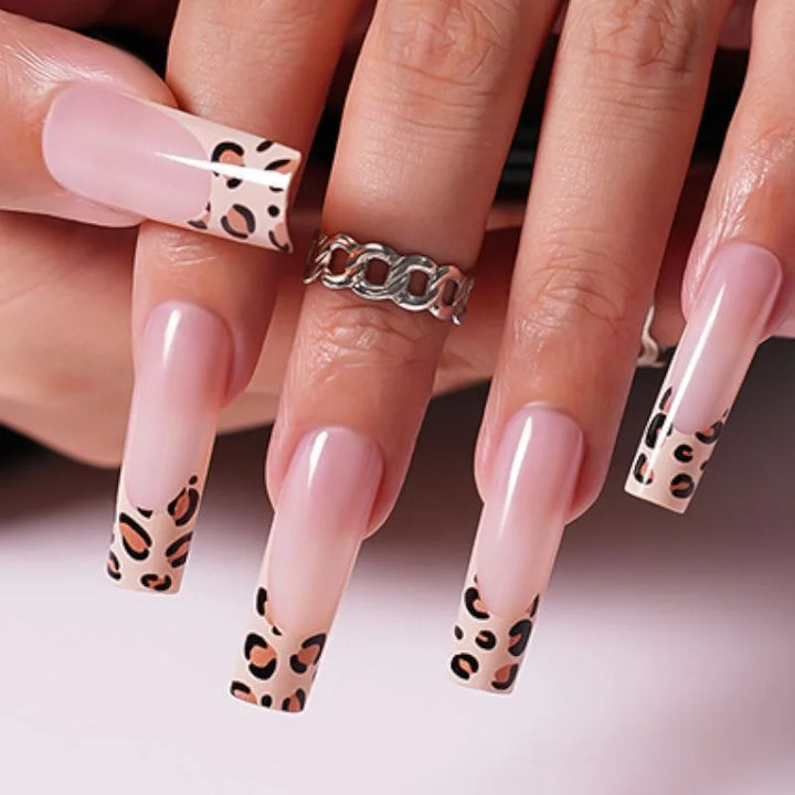 24pcs Wearable Nails Patch With Adhesive Kit Silver Black Leopard Print Edge Solid Color False Nail Manicure Art Gift Removable