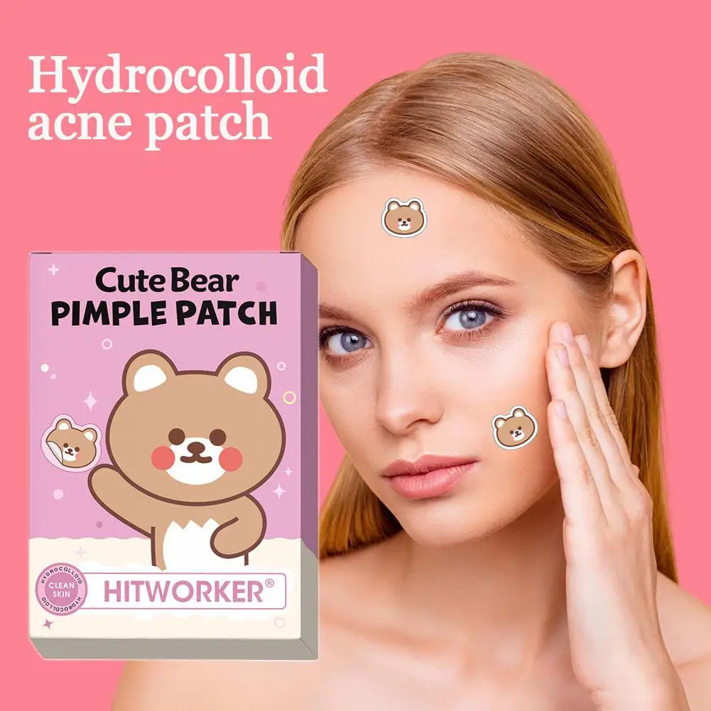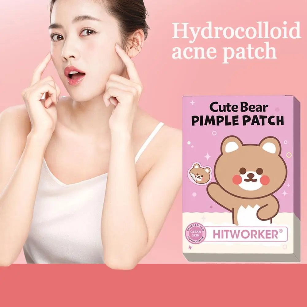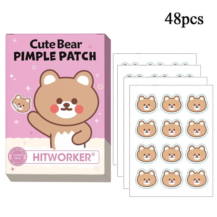 48pcs Cartoon Bear Hydrocolloid Acne Patch Cute Animal Invisible Acne Treatment Sticker Breathable Mild And Non-irritating
