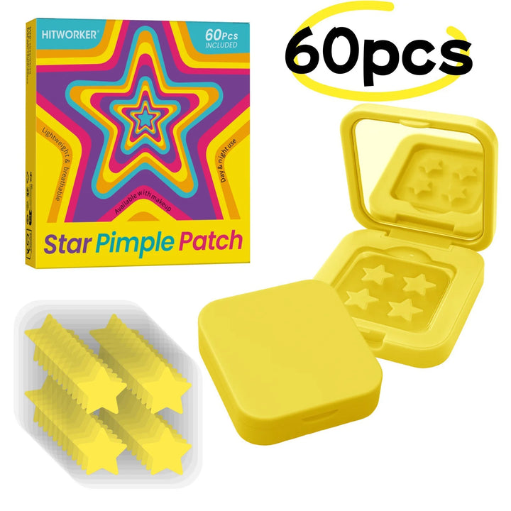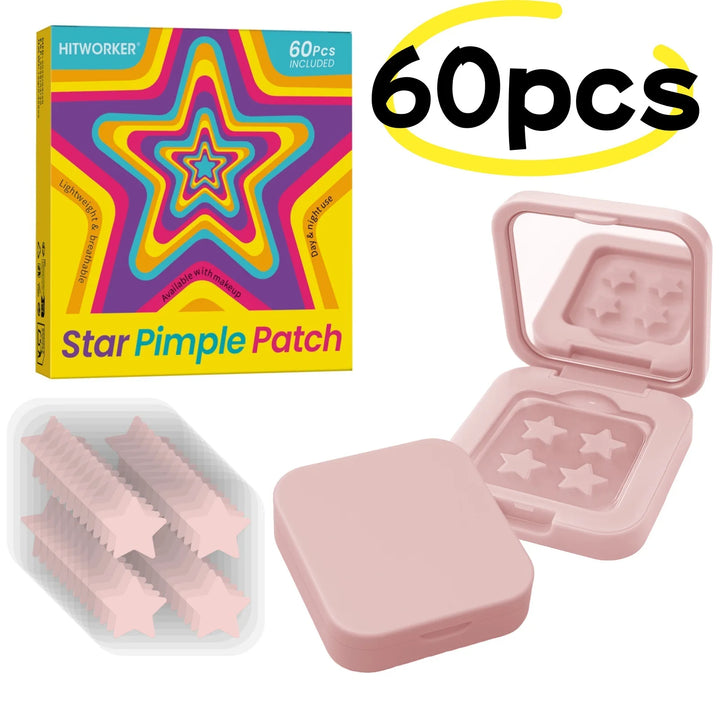 60 sheets/box of 4 colors of star acne stickers - water-based gel acne cover stickers, facial patches with makeup mirror
