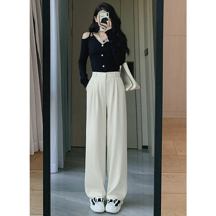 High Waist Women Suit Pants Fall Straight Office Ladies Korean Fashion Trousers Casual Button Loose Female Black Pants New 2025