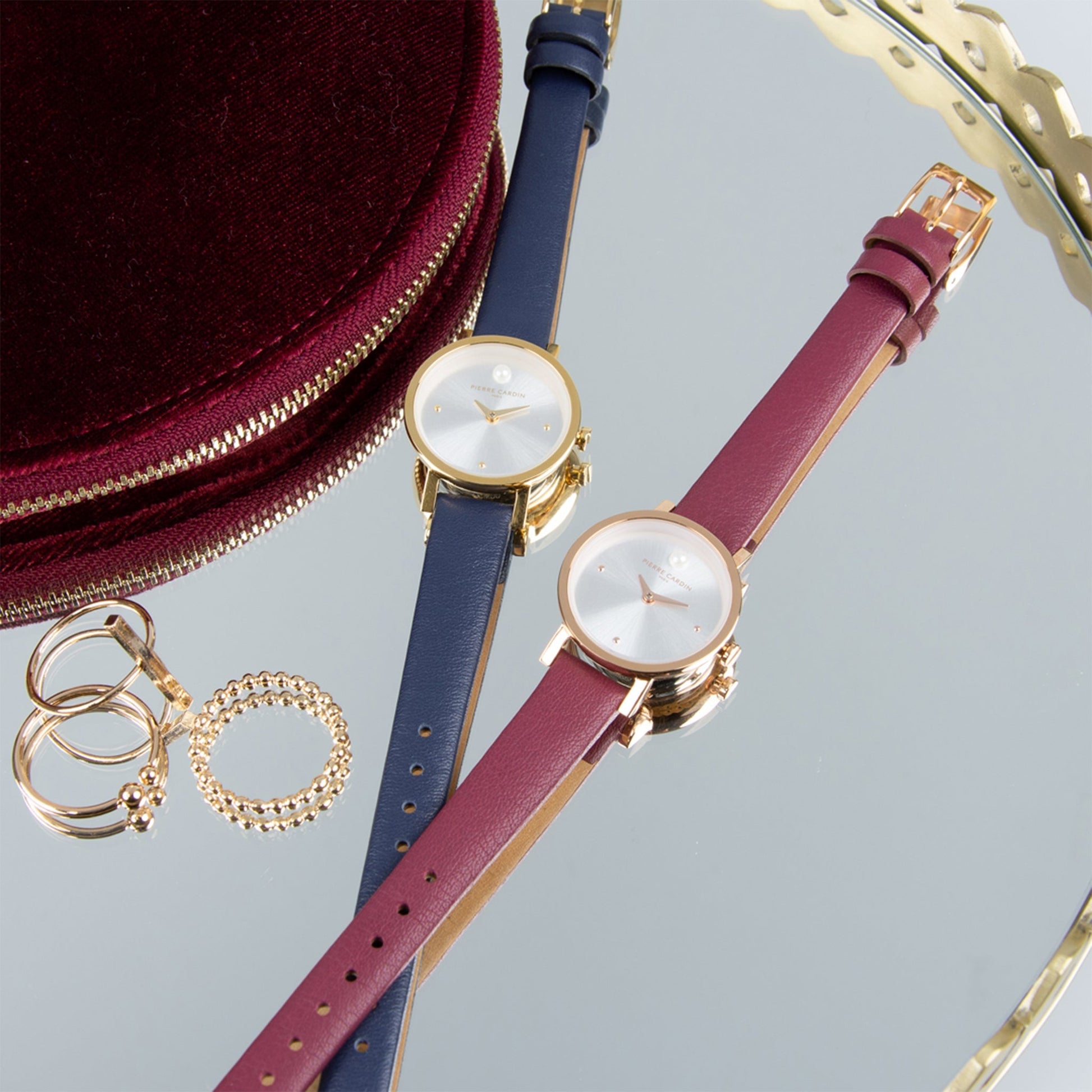 Pierre Cardin Women's Burgundy Leather Watch, Silver Dial | Ccm.0507