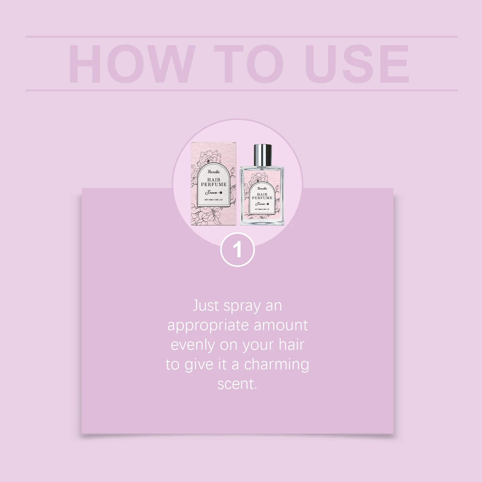 Just spray an appropriate amount evenly on your hair to give it a charming scent